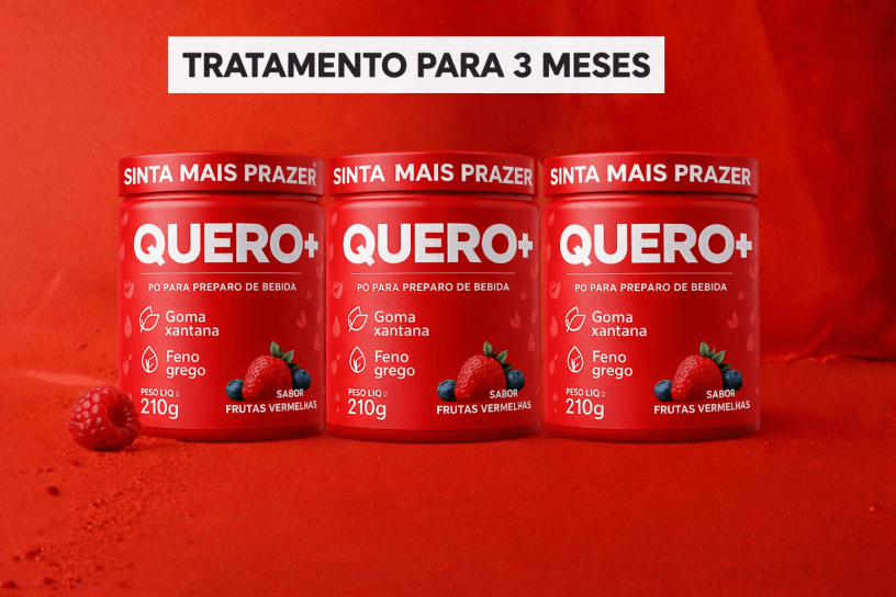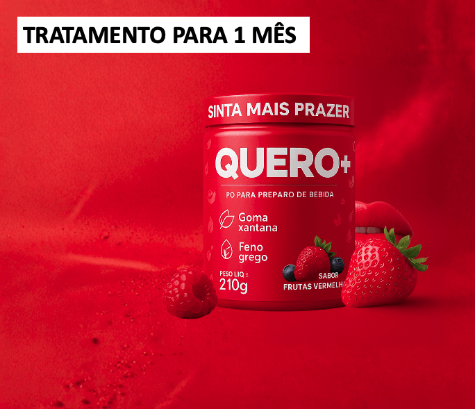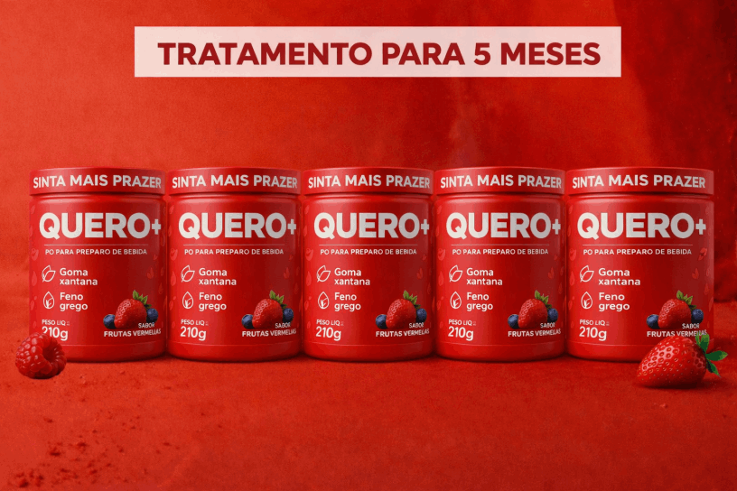 Quero+ é um pó para preparo de bebida com goma xantana e feno-grego, desenvolvido para estimular o bem-estar e o prazer feminino.